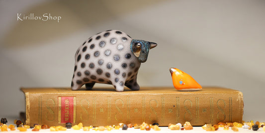 Ceramic Art Sculpture "Spotted Cat"