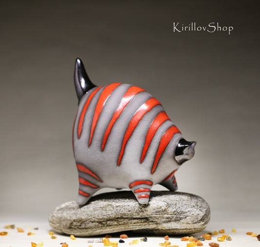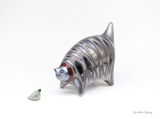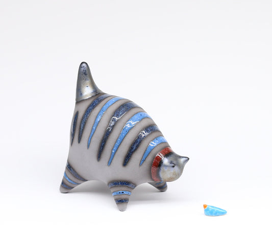 Cat figurine, Ceramic sculpture cat, Blue cat, Art striped cat, Handmade cat, Table decor, Cat lover gift, MADE TO ORDER