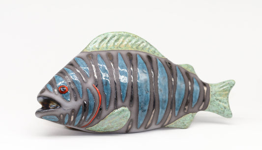 Blue Ceramic Fish Sculpture Wall Decor Art