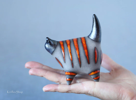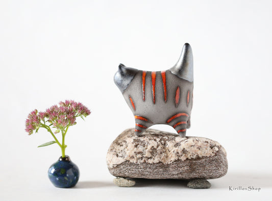 Ceramic cat sculpture, modern figurine for home decoration or as a gift for cat lovers, handmade ceramic, red cat, MADE TO ORDER