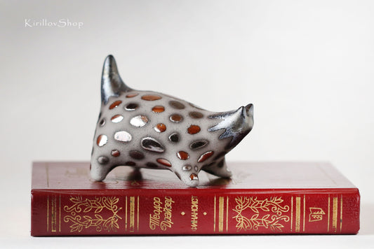 Bull figurine, small ceramic sculpture, miniature black bull, handmade , art figurine for table decoration or as a gift, Made to Order