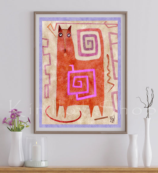 Abstract Cat Wall Art Print, Modern Digital Download, Geometric Animal Poster, Boho Home Decor