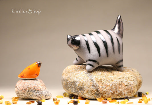 Cat figurine, Ceramic sculpture cat, Blue cat, Art striped cat, Handmade cat, Table decor, Cat lover gift, MADE TO ORDER