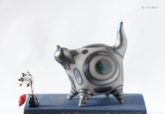 Ceramic cat sculpture, modern figurine for home decoration or as a gift for cat lovers, unique handmade cat, clay art, collectible